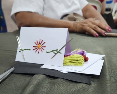 Bendito Nudo es una experiencia creativa y espiritual dirigida a mujeres, que une el bordado en papel, la reflexión y la fe.