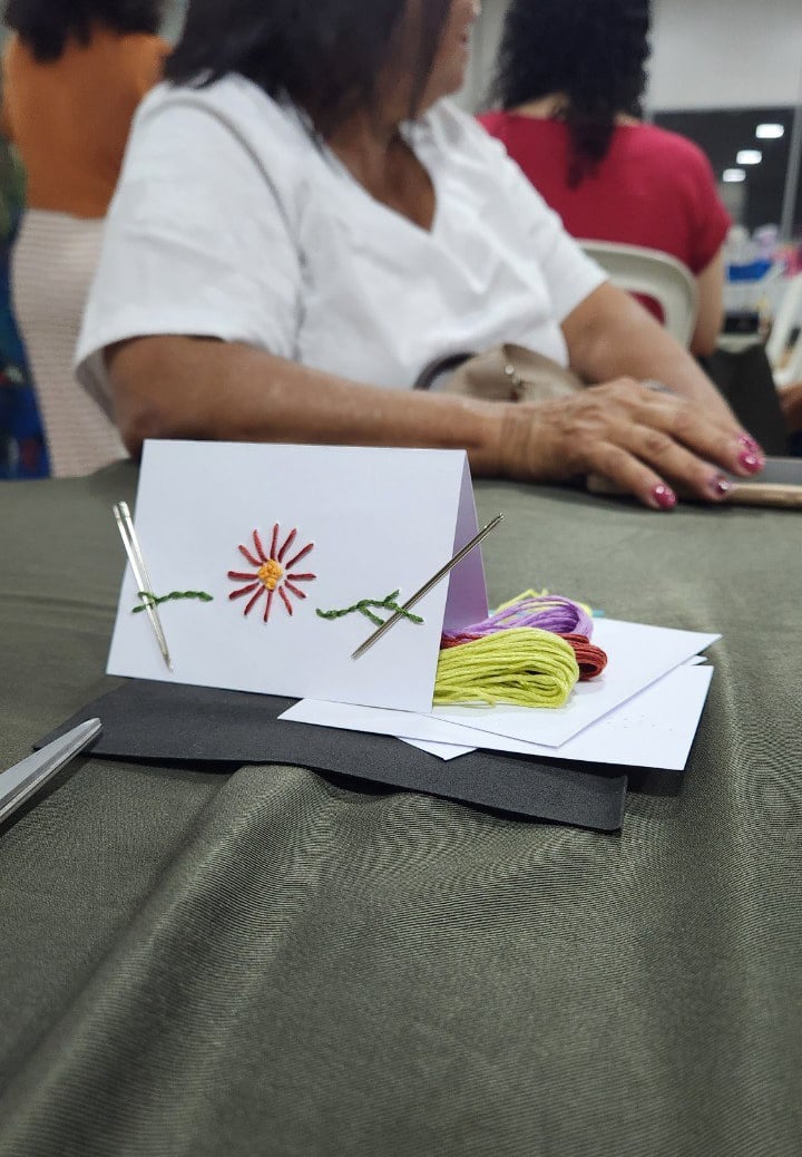 Durante la experiencia, las mujeres son invitadas a mirar sus propias trayectorias con delicadeza, reconociendo los nudos que cargan —y descubriendo que, al igual que en el bordado, el reverso de nuestra historia también puede ser bello y resignificado en esperanza.